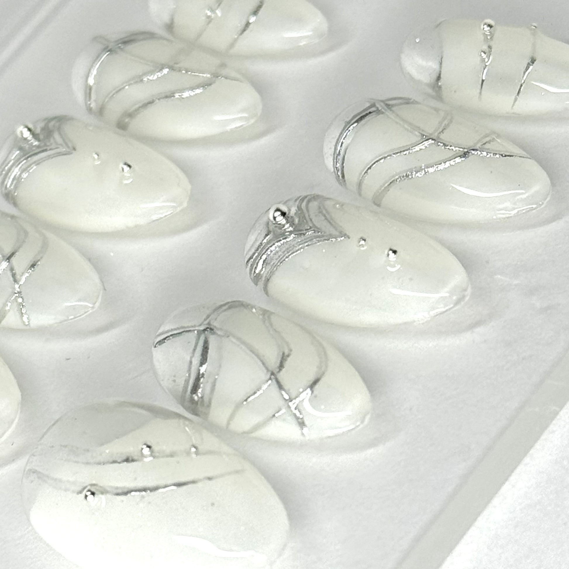 10 Hand-painted Press On Nails: packaged in an acrylic case to protect and store nails after use